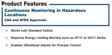 LP902 - Intrinsically Safe Loop Power Sensor, Acceleration, 4-20 mA, Top Exit Connector / Cable